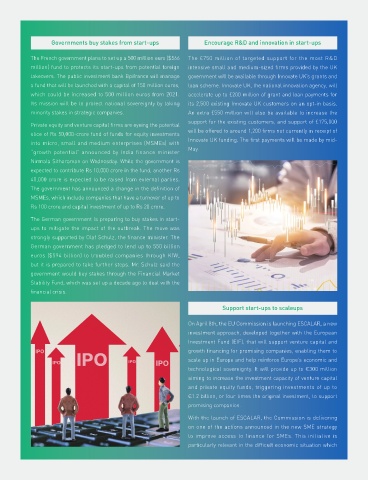 Governments buy stakes from start-ups Encourage R&D and innovation in start-ups