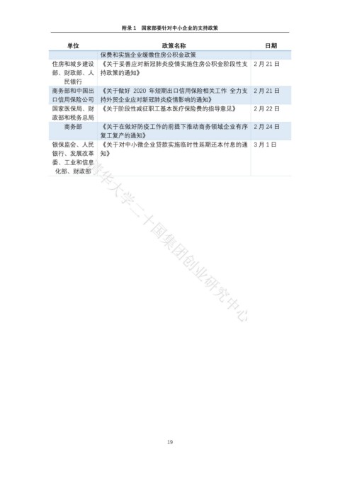 附录 1 国家部委针对中小企业的支持政策