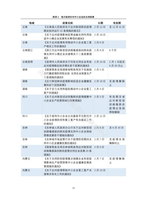 应对疫情稳定经济增长若干政策的通知》 6 月 30 日止